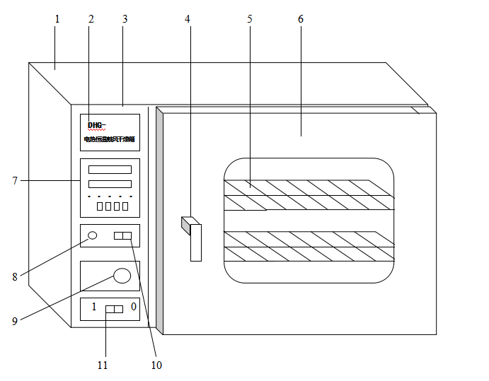 1. 把需干燥處理的物品放入干燥箱內(nèi),關(guān)好箱門。