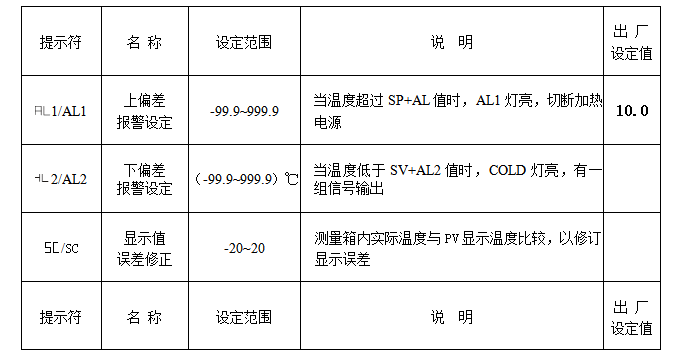 | 測(cè)量值顯示____ | 測(cè)量值下溢出 | 調(diào)整溫度設(shè)定值 |
