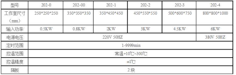 ■202-00A電熱恒溫干燥箱主要技術參數(shù)