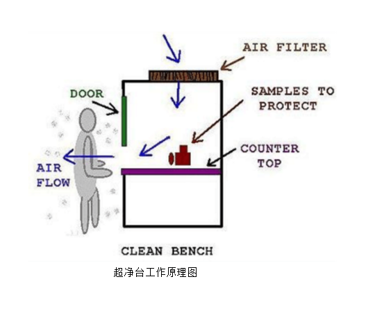 超凈臺(tái)是做一般對人體沒有直接傷害的常規(guī)細(xì)菌的操作實(shí)驗(yàn),正壓送風(fēng),工作臺(tái)工作區(qū)域的氣流形成為水平層流型。區(qū)內(nèi)空氣經(jīng)初效過濾器過濾后,由風(fēng)機(jī)壓入靜壓箱,再經(jīng)高效過濾器過濾,由此送出的潔凈氣流,以一定的均勻斷面風(fēng)速通過操作區(qū)將塵埃顆粒帶走,從而形成高潔凈的工作環(huán)境。超凈空氣的流速為24~30m/min,這已足夠防止附近空氣可能襲擾而引起的污染,這樣的流速也不會(huì)妨礙采用酒精燈或本生燈對器械等的灼燒消毒。
