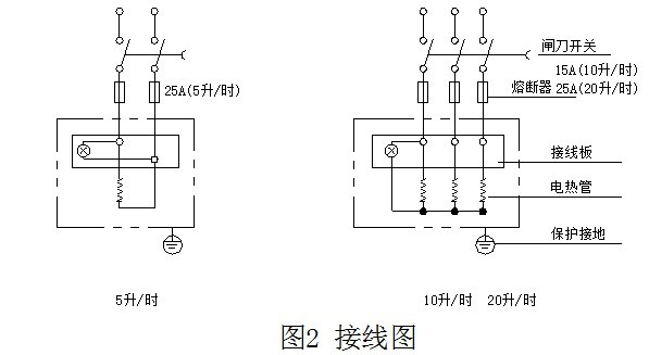 2.電源:用戶(hù)根據(jù)產(chǎn)品銘牌所示參數(shù),按接線(xiàn)圖接線(xiàn),電源插座應(yīng)有可靠接地,并應(yīng)配有熔斷器(用戶(hù)電路中必須安裝),保證使用安全,(5升、20升:2**;10升:1**)見(jiàn)(圖2)。